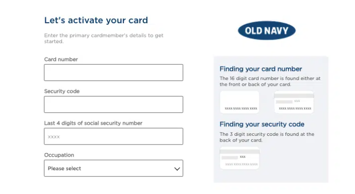 Activating online at oldnavy.com/activate is quick and convenient. Here’s how it works: